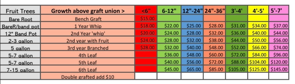 We produce trees on 4 different rootstock sizes, ultimately 3 feet to 30 feet.