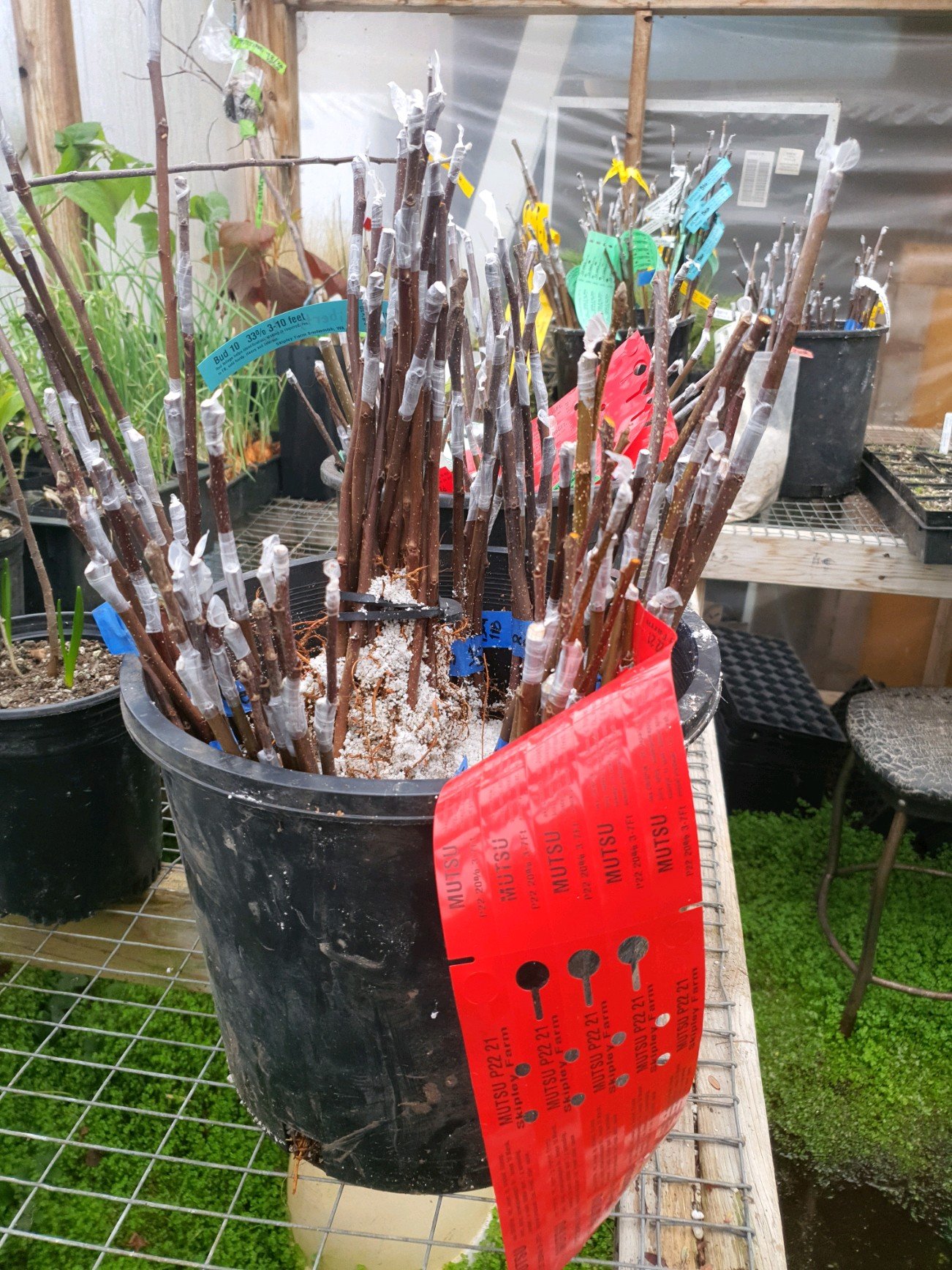 2. Two year old: trees (whips), typically a few feet but sometimes just a few inches of growth, side branches reduced or not existent and priced accordingly. Shipping is ideally Springtime and $20 +20% of total. 2024 I have about 1000 trees (grafted spring 2022)