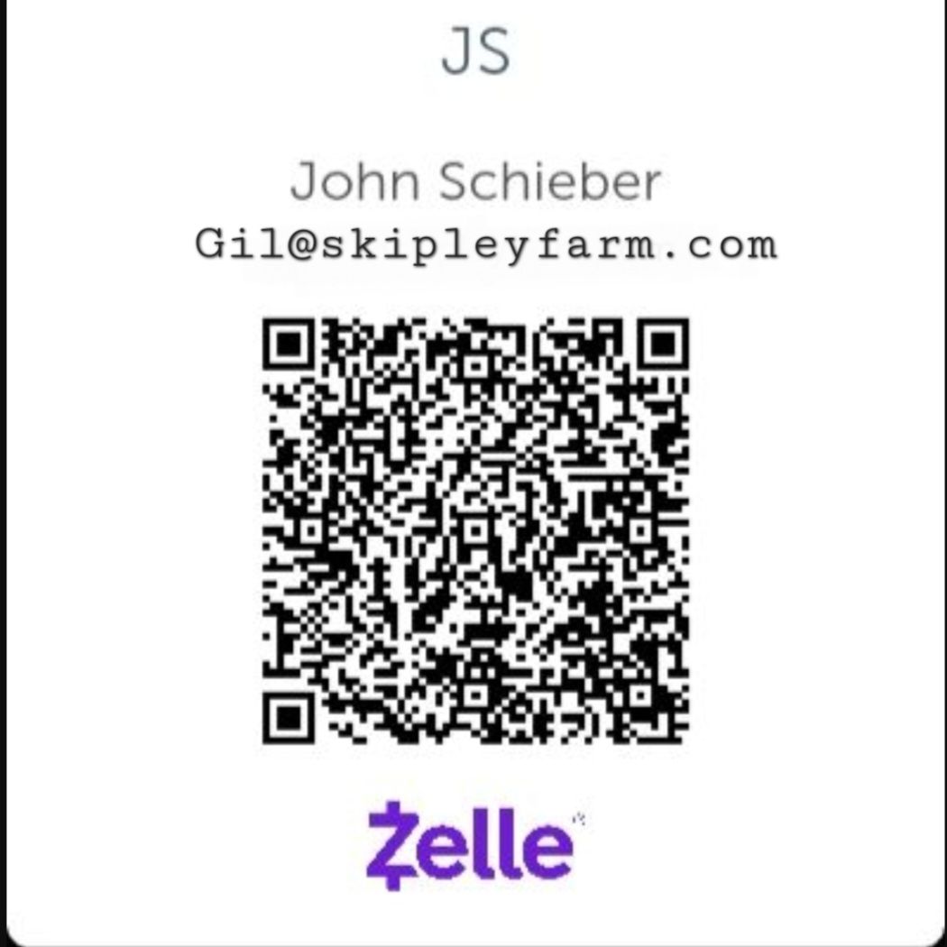 Mail a check and notes to Skipley Farm 7228 Skipley Rd. Snohomish, WA 98290 or Venmo Zelle, PayPal to 206-679-6576, or gil@skipleyfarm.com